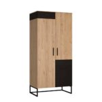 Шафа з колекції Cordoba виробництва компанії MebleWojcik. Для вітальні в сучасному стилі. Габаритні розміри: Ширина: 90 см. Висота: 197.5 см. Глибина: 58 см. Колір: Джексон Гікорі/чорний Даний товар у статусі повного розпродажу. Продається комплектом Cordoba Codf01 Комод Rtv 2d1s, Cordoba Codk01 Комод 3d2s, Cordoba Codv01 Вітрина 2d, Cordoba Cods01 Шафа 2D. Елементи знаходяться у розібраному вигляді у фабричній упаковці та потребують монтажу.