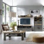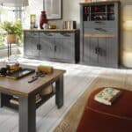 Журнальний столик із колекції Perazzo характеризується надійною обробкою, високоякісними матеріалами, які створюють міцний предмет меблів, і класичними формами, натхненними колоніальним і сільським стилями. Завдяки масивним елементам і функціональному та вражаючому висувному ящику під стільницею стіл Perazzo набуває унікального та позачасового вигляду, який привертає увагу та вражає своєю універсальністю використання. Стильний стіл кольору Антрацит (корпус, ніжки та елементи каркаса) має ефектну стільницю у відтінку дерева (дуб Амаретто Хадсон). Ця класична комбінація виглядає надзвичайно елегантно завдяки структурі деревини на стільниці, видимій і тактильній.