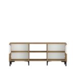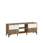 Тумба під телевізор Ricko виготовлена з ламінованого ДСП, а її колір відповідає модному поєднанню білого кольору з натуральним відтінком дерева (дуб Coast Evoke). Стильна тумба під ТВ має елементи цифрового друку, що імітують борозенки. Цей характерний елемент колекції меблів Ricko дозволяє використовувати предмет меблів у приміщеннях, де дерев’яні рейки є декоративним елементом. Надайте своїм кімнатам надзвичайний 3D-ефект і пограйте з композицією.