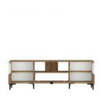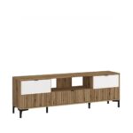 Ricko RIKF02 Тумба RTV 2D1K з двома дверцятами та закритою полицею вміщує електроніку, яку ви хочете виставити, та елементи, які розміщуються за повними фасадами дверей. З його допомогою можна оформити кімнату, оформлену в сучасному, індустріальному, скандинавському, бохо або еклектичному стилі.
