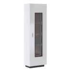 Білі, глянцеві фасади мають ефективне скління та додатково прикрашені ніжною, чорною рамкою, що виступає. Світлодіодне підсвічуванням входить у комплект. Завдяки такому поєднанню меблі набувають легкості та доповнюють облаштування всієї кімнати. Вітрина має два варіанти: правий і лівий.