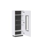 Інтер’єр вітрини може бути додатково освітлений додатковим освітленням (Square – встановлений у верхній частині меблів або Led CLips – встановлений на скляних полицях).