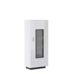 Низька сучасна вітрина RAVV02 R відрізняється простою формою та білим кольором, який контрастує з чорною, освітленою рамкою навколо скління. Вітрина оснащена аксесуарами з системою безшумного закривання , завдяки чому щоденне використання буде майже безшумним.